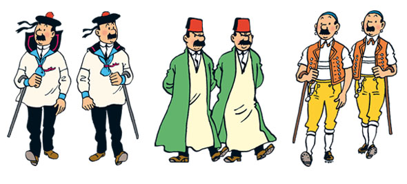 Uns dels secundaris més coneguts de les aventures de Tintin, són els dos detectius maldestres Dupond i Dupont. En realitat no acostumen a tenir cap paper rellevant a les històries i el que fan és afegir uns tocs d’humor en la trama. Això pot ser pels seus raonaments absurds, per la manera com es disfressen intentant passar desapercebuts i aconseguint just el contrari, per les trompades que reben i, fins i tot, per la manera particular de parlar.